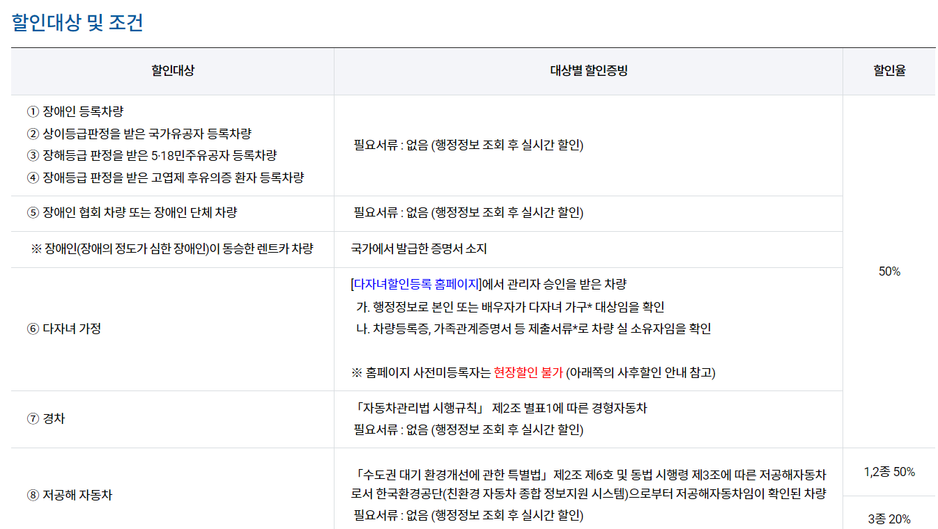 김포공항 주차요금은 할인율이 50%이 적용됩니다. 다만, 이 할인율은 장애인, 상이등급판정을 받은 국가유공자, 장애등급 판정을 받은 5·18민주유공자, 장애등급 판정을 받은 고엽제 후유의증 환자, 다자녀 가정, 경차, 저공해 자동차의 경우에 한해 적용이 가능합니다. 이 중 여러 항목에 해당된다 해도 가장 유리한 1가지에 대해 할인이 되며 중복 할인되지 않습니다. 추가적으로, 저공해 자동차 3종은 20% 할인되는 점 참고바랍니다.