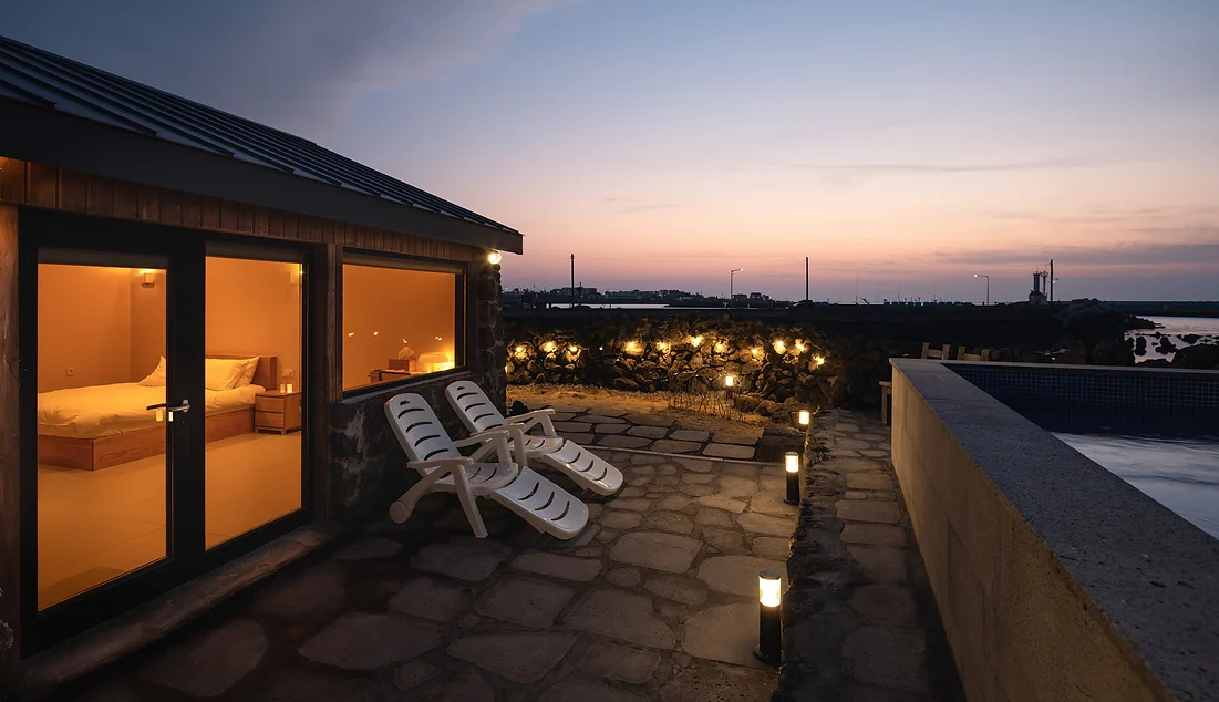 말로나스테이 역시 건물 바로 앞에 바다와 돌담이 있어 제주도 감성을 제대로 느끼기 좋은 제주도 오션뷰 숙소입니다. 제주도 바다 경치를 조용하고 잔잔하게 느껴보고 싶다면 말로나스테이를 추천드립니다. 또, 조식제공 이벤트도 진행하고 있으며 연박을 할 경우 메뉴가 매일 새로운 메뉴가 제공되는 동시에 1회 바베큐 무료 제공됩니다.