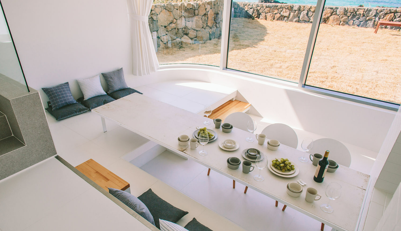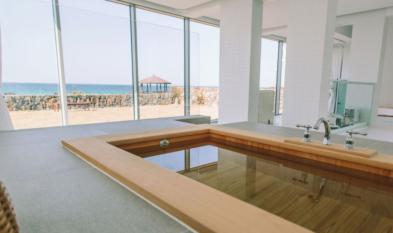 문워크는 건물 바로 앞에서 제주도의 푸른 바다 풍경을 감상할 수 있는 것이 최고 장점인 제주도 오션뷰 숙소입니다. 독채로 구성되어 있고 최대 6명까지 입실이 가능합니다. 객실 내부는 화이트톤으로 이루어져 있어 깔끔한 인테리어로 편안한 기분을 선사합니다. 건물의 옥상이나 마당에서 자유롭게 휴식을 취하실 수 있습니다. 바로 앞이 바다이기 때문에 시원한 바다 바람을 맞으며 산책을 즐기기에도 좋습니다. 객실 내부에는 히노끼탕이 있어서 스파를 즐기며 여독을 풀고 지친 피부를 관리하기에도 좋습니다.
