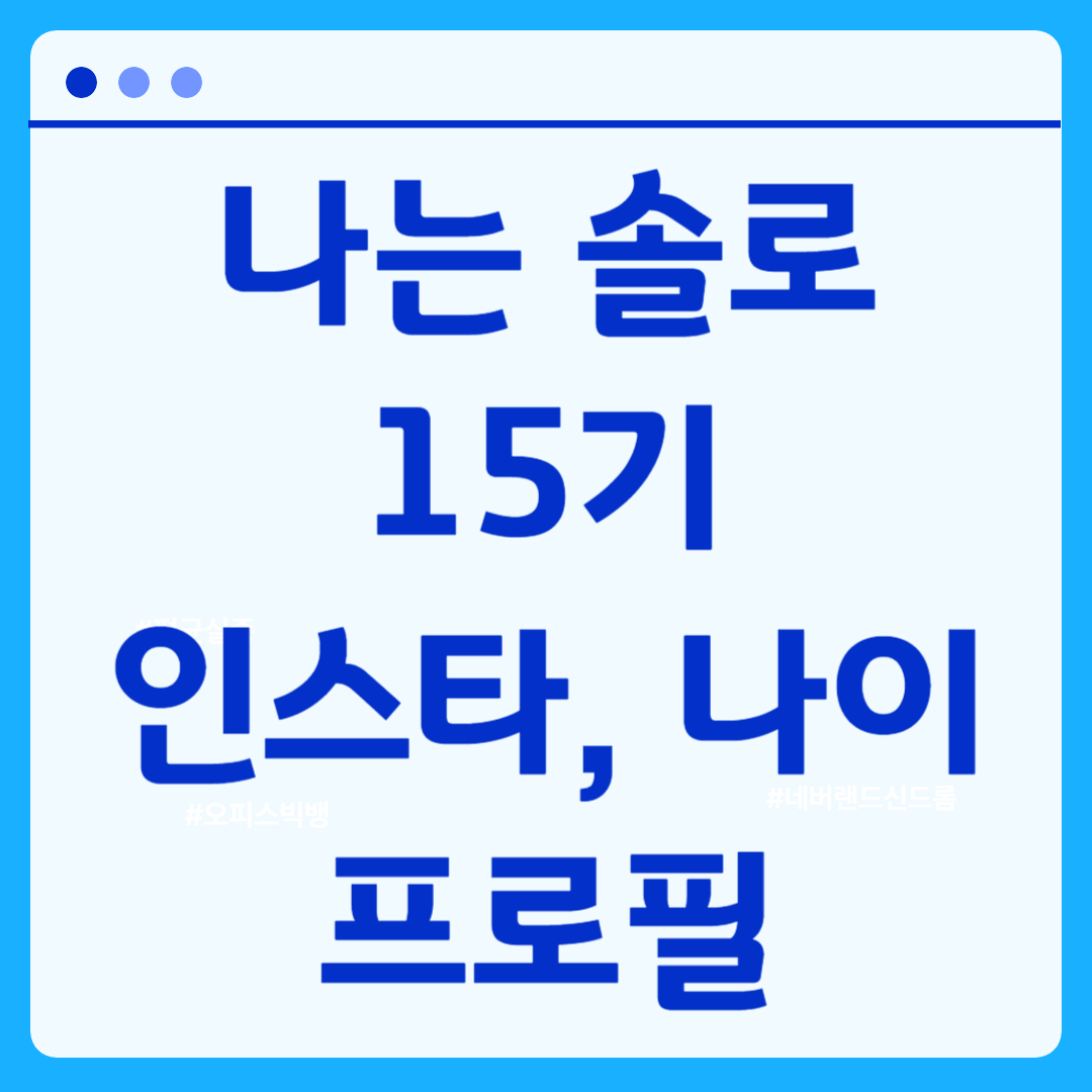 나는 솔로 15기 출연자들을 남녀별로 구분해서 나이, 직업, 그리고 인스타까지 모두 정리해보았습니다. 이번 기수에서는 어떤 커플이 결혼커플로까지 이어지게 될지 많은 분들의 관심이 집중되고 있는데요. 그럼 각 출연자들의 프로필을 아래에서 하나씩 살펴보도록 하겠습니다.
