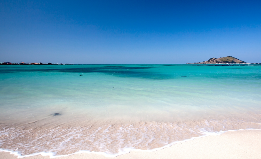 제주도에서만 볼 수 있는 환상적인 에메랄트빛이 나는 협재해수욕장입니다. 제주도 서쪽에 위치하며 바다가 넓으면서 수심이 깊지 않은 편이기 때문에 어린이들이 있는 가족 단위로 오기에 좋은 곳입니다. 또, 사진에 보이는 것처럼 바다 뒤편으로는 비양도가 있어 운치가 남다른 분위기를 띠고 있습니다.