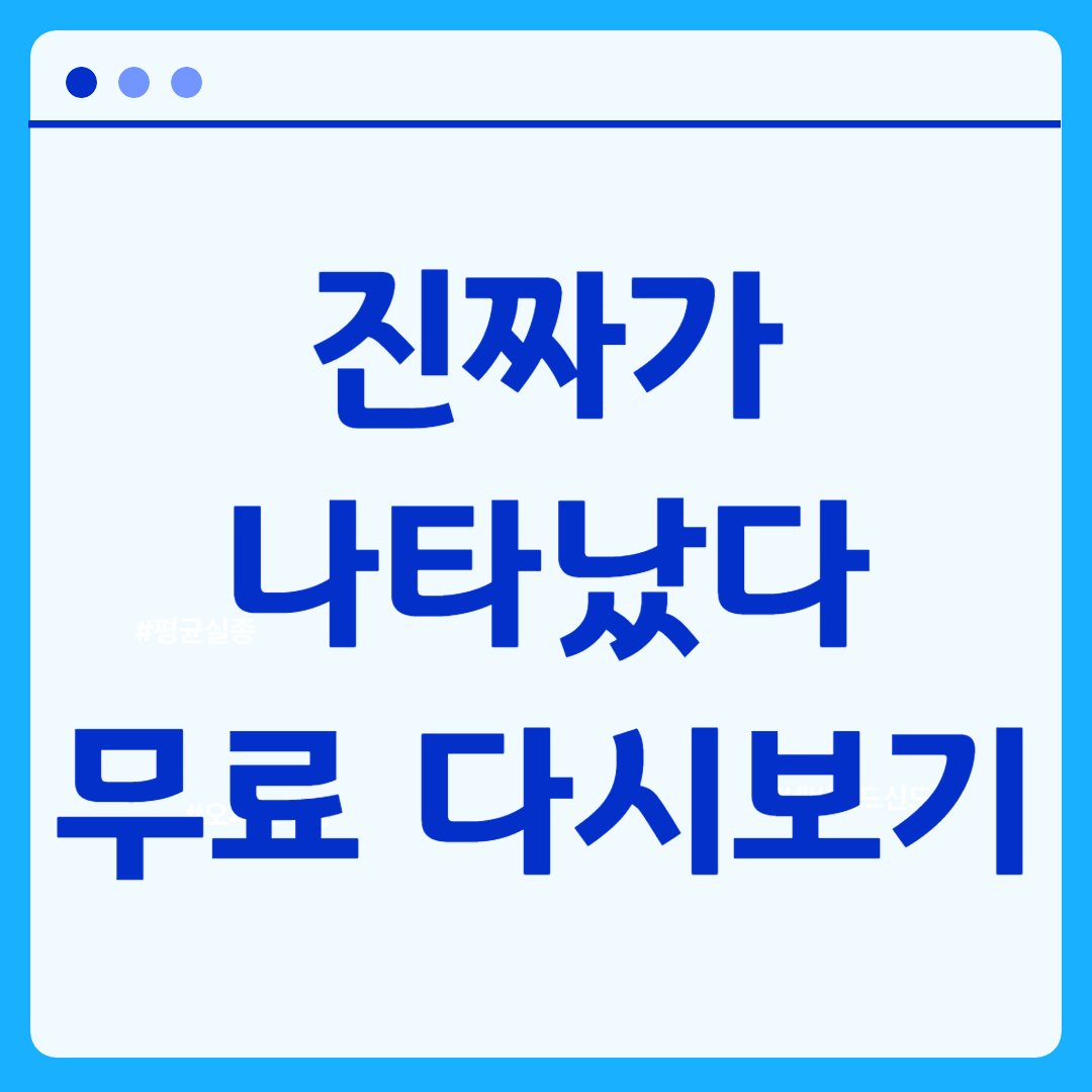 토, 일 저녁 8시 5분이 조금 지나면 드라마 진짜가 나타났다 방송이 시작됩니다. 주말 저녁마다 많은 시청자들을 들었다 내려놓았다 하는 재미를 선사하는 드라마이기도 한데요. 하지만 개인 사정으로 시간이 맞지 않아 본방송을 놓친 분들이 계실 텐데요. 오늘은 이 분들을 위해 진짜가 나타났다 다시보기 재방송 보실 수 있는 사이트로 바로가기 안내드리겠습니다.