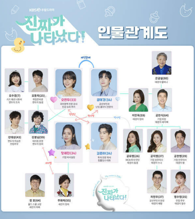 드라마 진짜가 나타났다의 인물관계도입니다. 보면 볼수록 재미있게 꼬여있는 인물 관계를 한 눈에 살펴보실 수 있습니다. 흥미로운 인물 관계도와 함께 주연 배우들의 인스타그램을 아래에 남겨드릴테니 촬영장에서의 생생한 현장 모습을 함께 즐겨보세요!