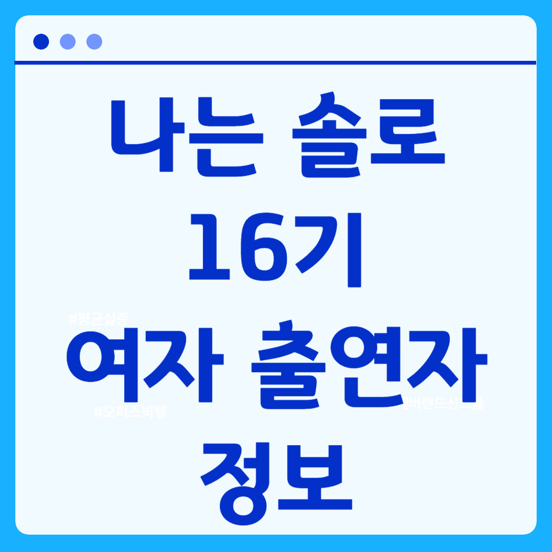 나는 솔로 16기 돌싱특집으로 다시 돌아왔습니다. 옥순 정숙 현숙 순자 영자 영숙 여자 출연자들의 인스타, 직업, 성격 등 각 캐릭터의 다양한 사연들까지 모두 알아보는 시간 가져보겠습니다. 이어서 많은 분들이 궁금해하는 나는 솔로 16기 돌싱특집의 촬영 장소까지 소개드릴테니 끝까지 주목해주세요!