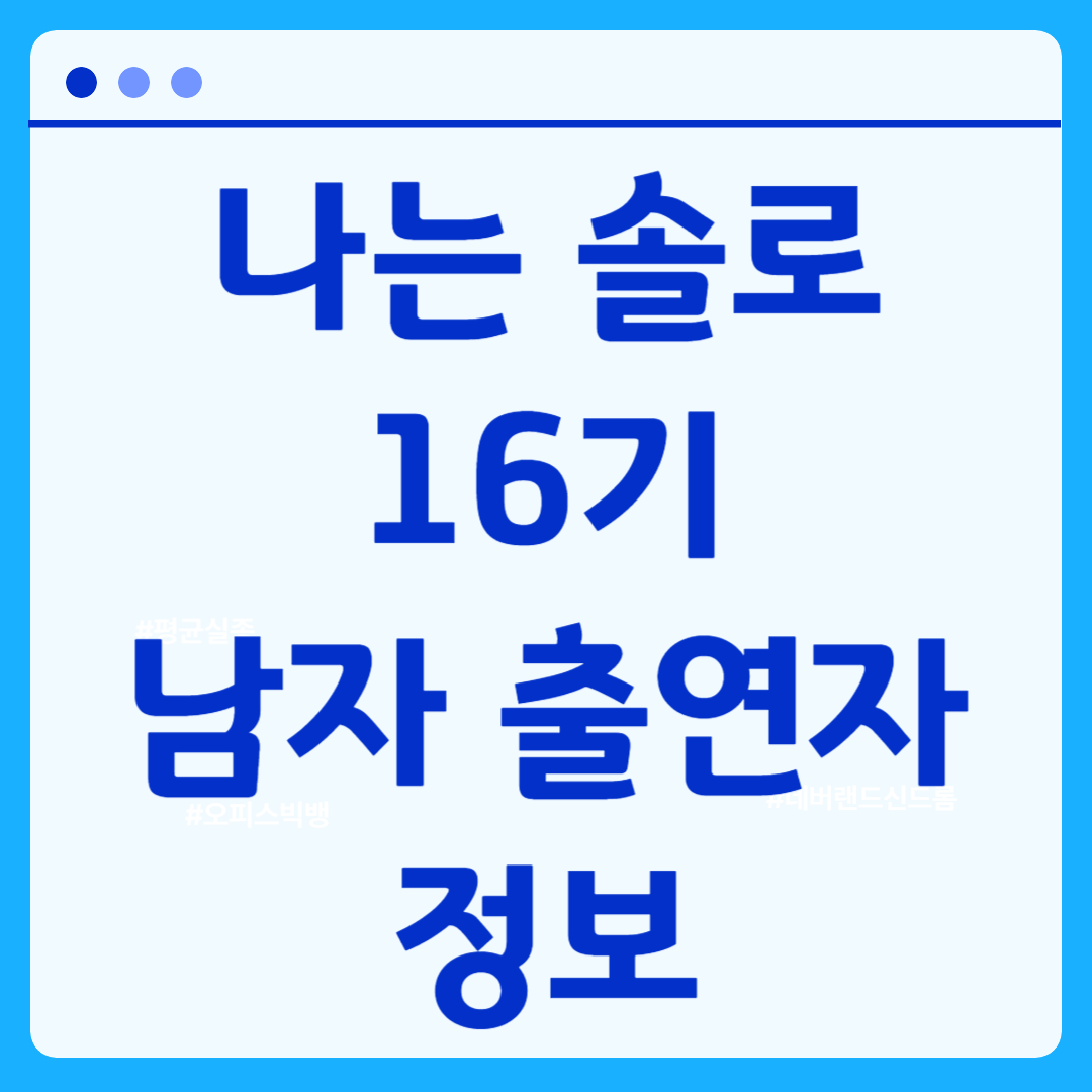 나는 솔로 16기 돌싱특집으로 돌아왔습니다. 오늘은 남자 출연자 인스타, 직업, 그리고 개인별로 선호하는 여자 스타일, 이상형 등등 각 출연자들의 개성 넘치는 캐릭터, 성격 모두 알려드립니다.